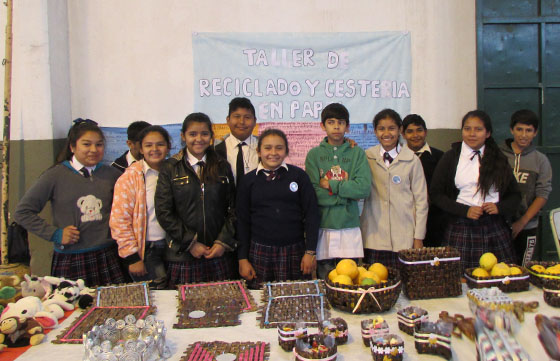 Alumnos de un establecimiento educativo de la localidad de General Ballivián fueron capacitados en fabricación de elementos con material reciclado y expusieron sus trabajos durante una jornada de cierre del proyecto Desarrollo Tecnológico Municipal (Detem).