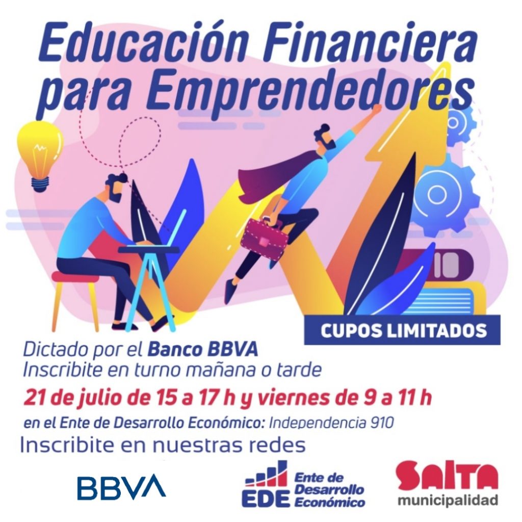 BBVA continúa el fortalecimiento de sus programas de Educación Financiera. Esta vez en conjunto con el Ente de Desarrollo Económico de la Municipalidad de Salta se ocupará de la capacitación a emprendedores locales a través de dos talleres presenciales en la ciudad capital de dicha provincia.