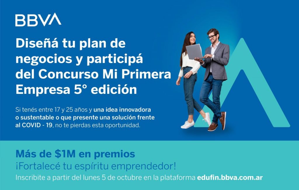 BBVA presentó la quinta edición del certamen Mi Primera Empresa destinado a jóvenes de entre 17 y 25 años, con el objetivo de desarrollar, motivar y fortalecer el espíritu emprendedor e innovador a través del aprendizaje y de la creatividad. Este año, el certamen entregará 1.500.000 pesos en premios.