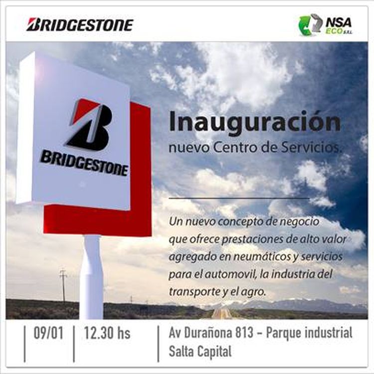 Hace instantes se informó que Bridgestone canceló la inauguración en Salta de un Centro de Servicios NSA Eco, que funcionará en Av. Durañona 813, del Parque Industrial.