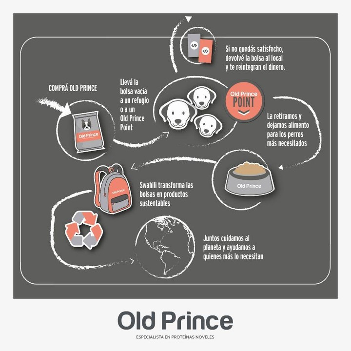 Participar es muy fácil y no requiere de ningún esfuerzo. Quienes compren productos Old Prince deben llevar el envase vacío a algún refugio de animales o a los pet shops adheridos. Luego la marca los retira y colabora con dichas organizaciones dejándoles 2 kg. de alimento, por bolsa reciclada, para los perros y gatos allí rescatados. Y por último, en el taller de Swahili transforman la basura en una oportunidad laboral para vecinos del barrio.