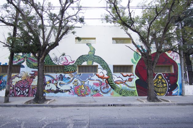 Por otro lado, Ruta de Murales trabajaba aún en un mural sobre calle España, en cercanías del colegio Estrada. “Ese mural fue pintado por los chicos que vinieron desde Sinteplast, porque querían dejar su sello allí. Es una pared que está escrita y con pintadas y ellos están arreglándola para dejar su sello allí también”.