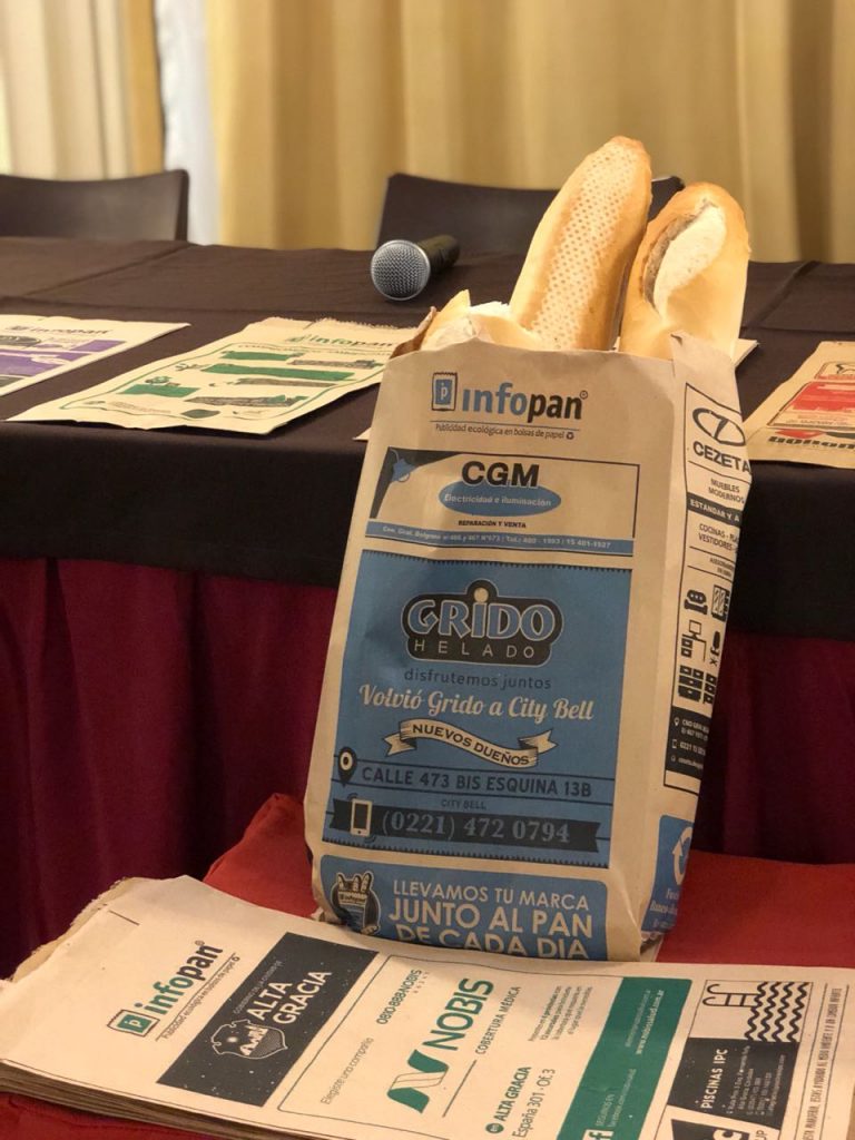 Esta mañana se presentó en Salta a Infopan, un nuevo soporte de comunicación que consiste en repartir gratuitamente bolsas de papel 100% ecológico en las panaderías más reconocidas de distintos barrios, las cuales están impresas con publicidad.