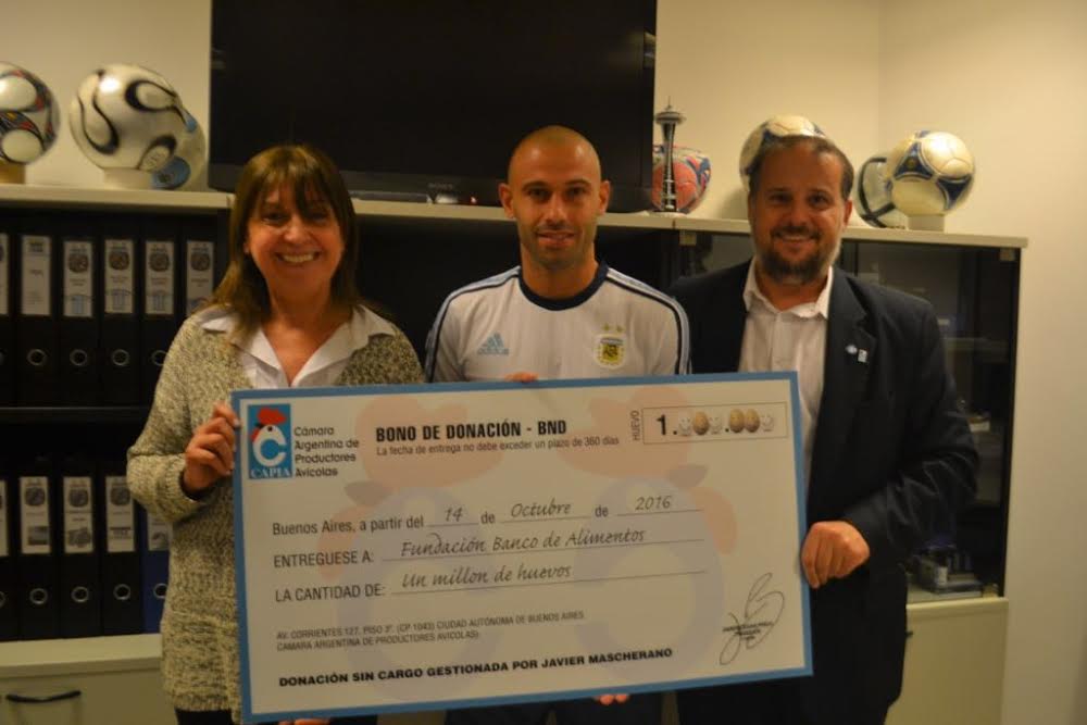 Javier Mascherano, ídolo deportivo y referente de la selección nacional de fútbol, se lanzó a una cruzada por la alimentación saludable. El deportista encabezó junto a la Cámara Argentina de Productores Avícolas (CAPIA) una acción para llevar 1.036.000 huevos a los comedores infantiles de todo el país junto con la Fundación Banco de Alimentos, con el propósito de concientizar sobre nutrición.