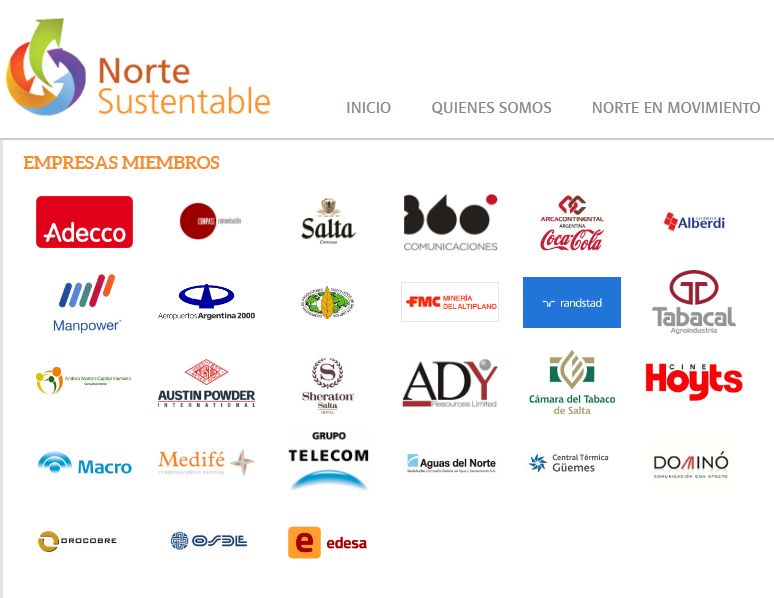 Norte Sustentable tiene entre 20 y 25 empresas que trabajan de manera constante. Se cuentan entre ellas a pymes y multinacionales, cada una debe cumplir el requisito de trabajar la responsabilidad social. Se reúnen una vez al mes y como los rubros son muy diversos, se conformaron comisiones de trabajo, para poder actuar de una manera más organizada. En el grupo hay empresas de servicios públicos, hotelerías, recursos humanos, tabaco, aguas y gaseosas, hoteles, obras sociales, bancos, comunicaciones, etcétera.